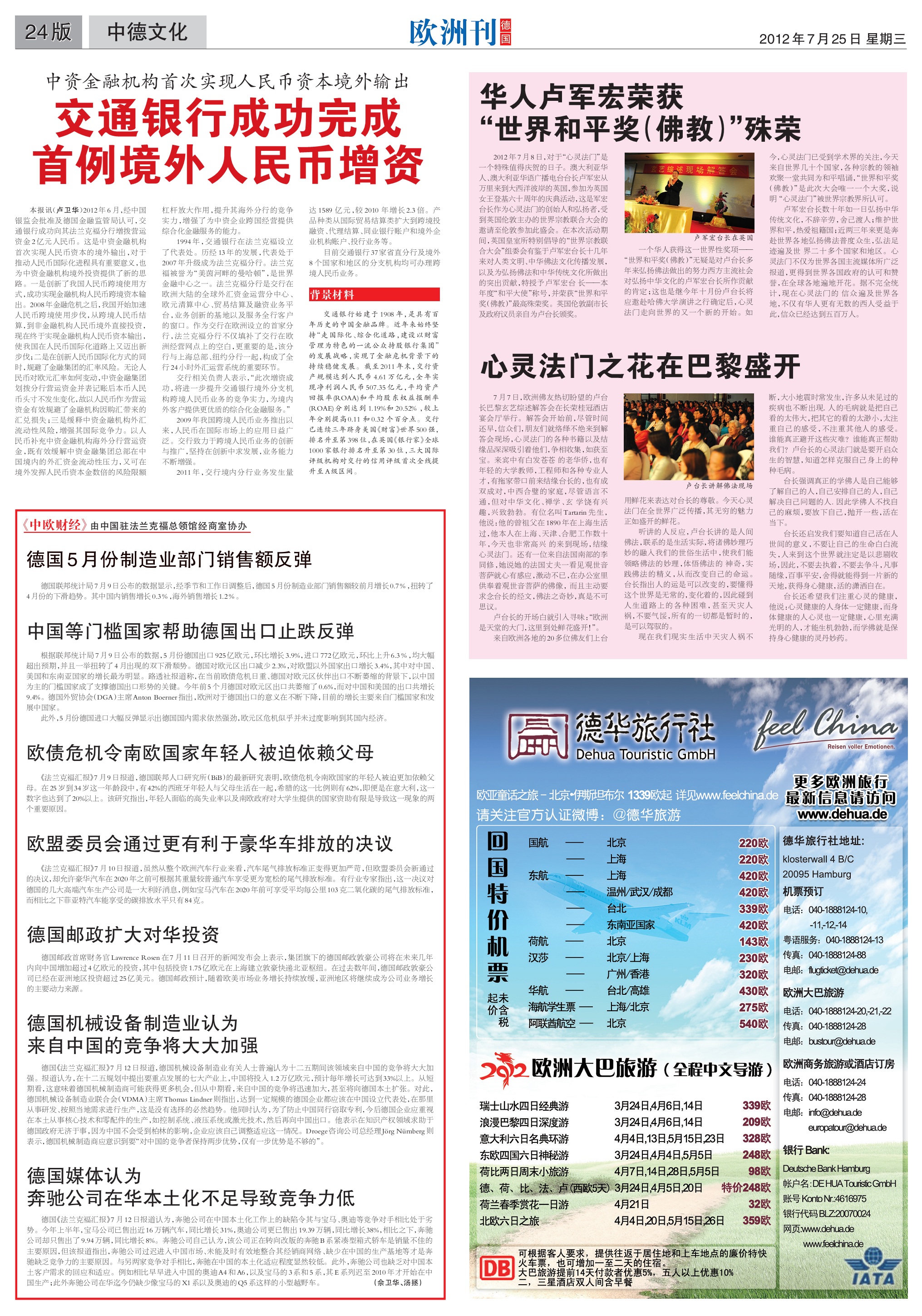 2012-7-25 《人民日报》海外版欧洲刊报道卢台长荣获“世界和平奖(佛教)”殊荣